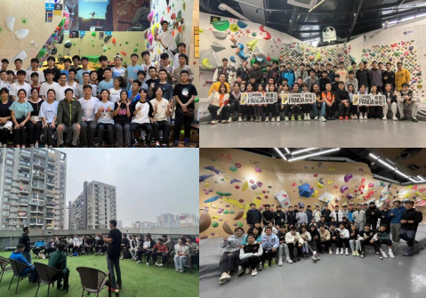 在开展一个月的时间里教学组带着同学们在市内岩馆进行研学,分别走进了 大松果马达攀岩馆,熊猫攀岩馆,生存者攀岩生活馆、乐动飞蛙攀岩馆。通过在 每个攀岩馆深度的交流、不同的攀岩馆的攀爬教学,让同学们充分感受了各种线 路、各种造型,沉浸式体验了攀岩的乐趣,掌握了更多的攀岩技巧,使同学们对 攀岩行业有了更深入的理解。