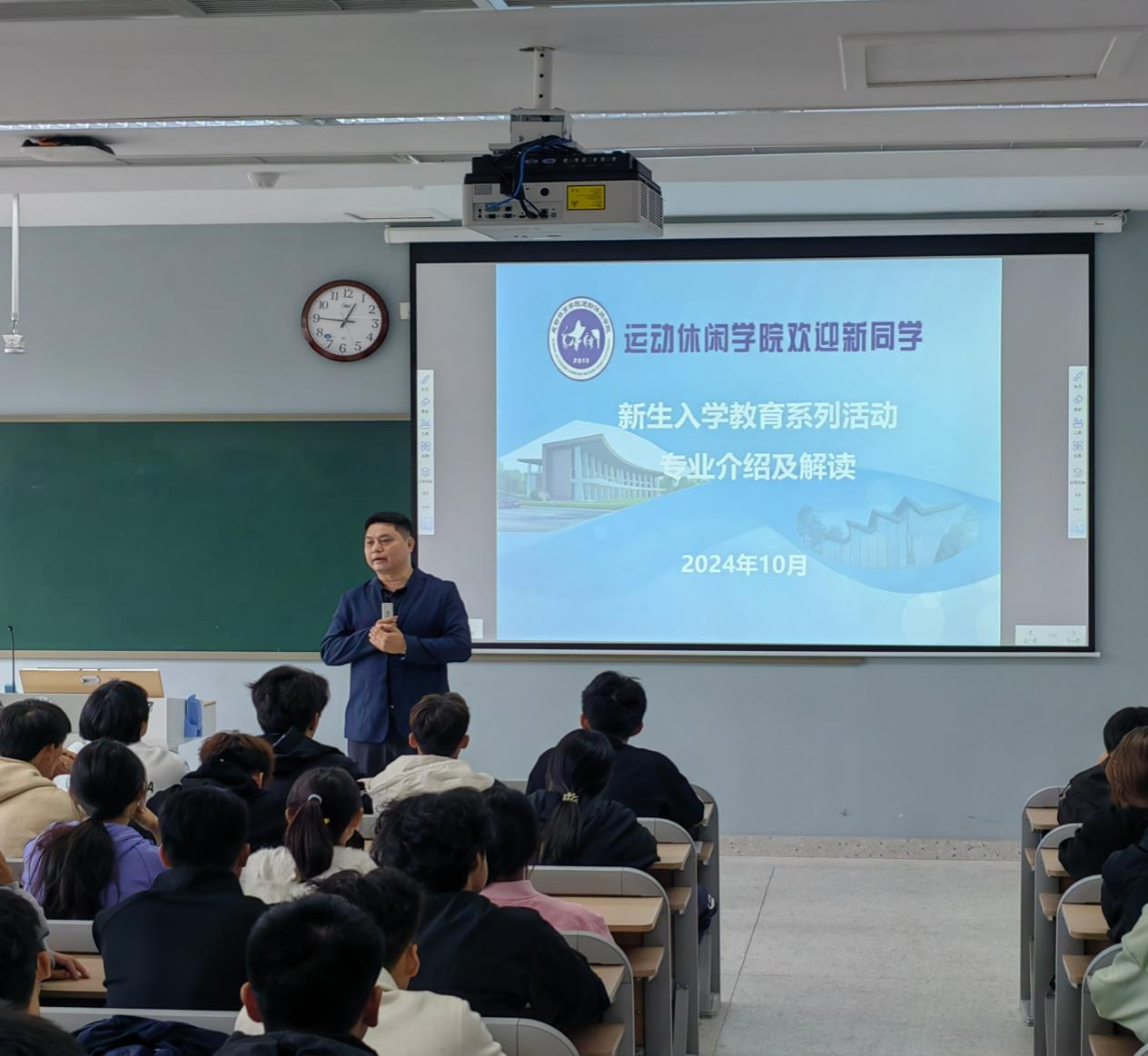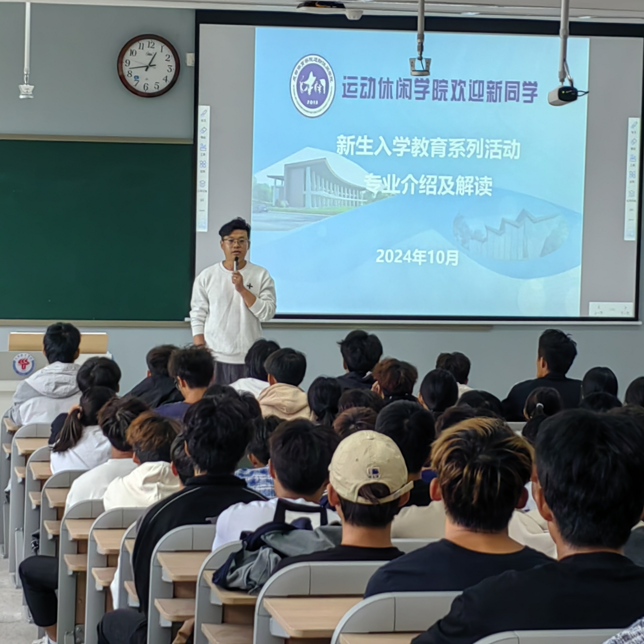 10月10日,今年会官方网站举行了2024级休闲体育专业和社会体育管理与指导专业,入学教育系列讲座之专业介绍及解读,今年会官方网站副院长蒋书君担任主讲人,学生管理办公室主任耿松主持会议。