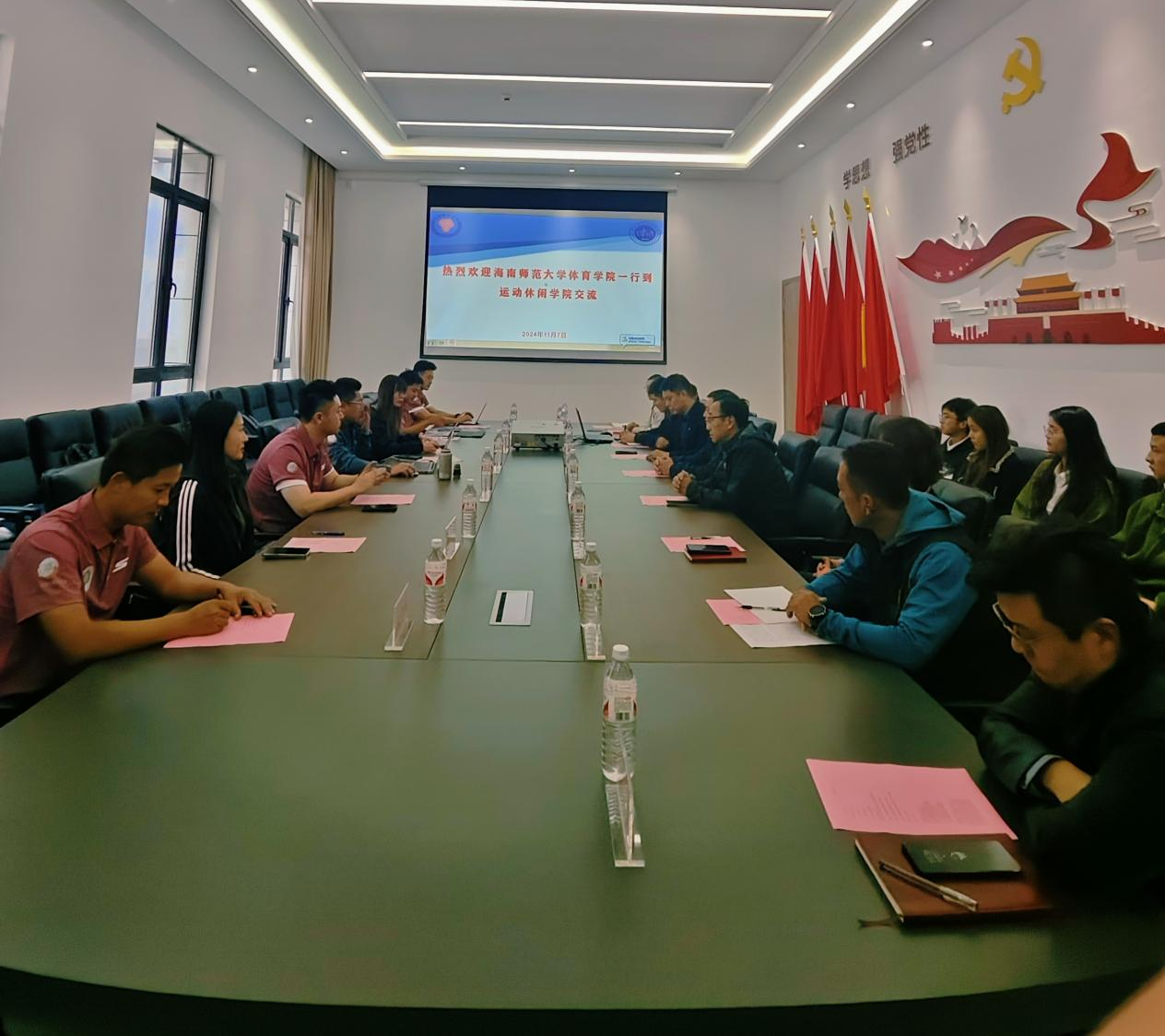 2024年11月7日下午,海南师范大学体育学院社会体育系到今年会官方网站交流,学院领导、各系、学管办、学院办公室相关负责人出席了此次交流会。此次交流旨在增进双方在教学与研究领域的了解与合作。