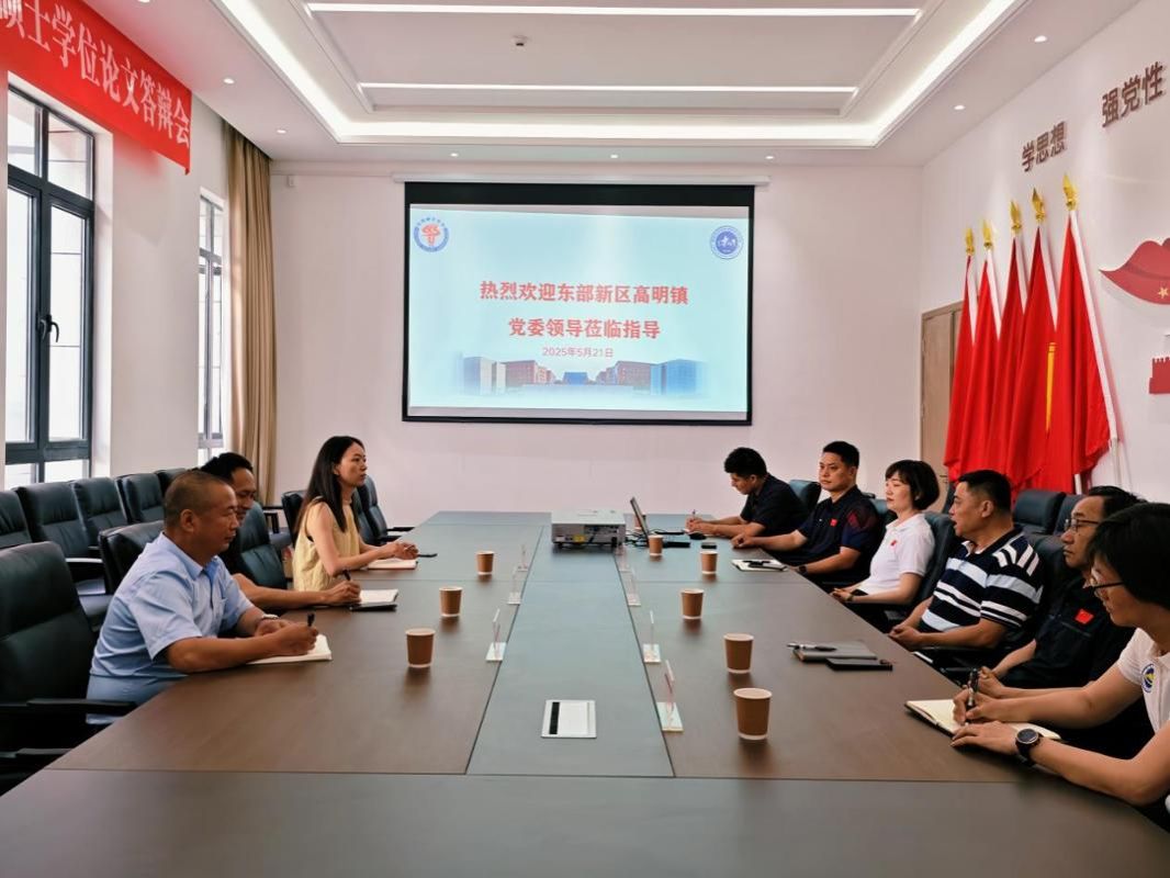 2025 年 5 月21日,东部新区高明镇党委副书记伍书林等一行三人到今年会官方网站开展交流调研。学院领导班子、社会体育指导与管理系及院办等老师参会。