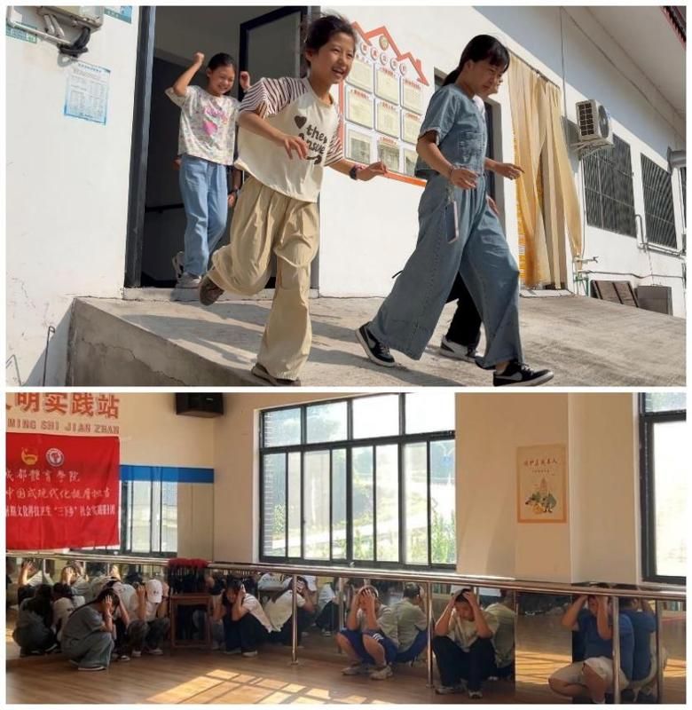 组织儿童开展地震疏散演练增强安全意识,并学唱《我们是共产主义接班人》培养爱党爱国情怀,最后通过才艺展示环节提升自信风采。