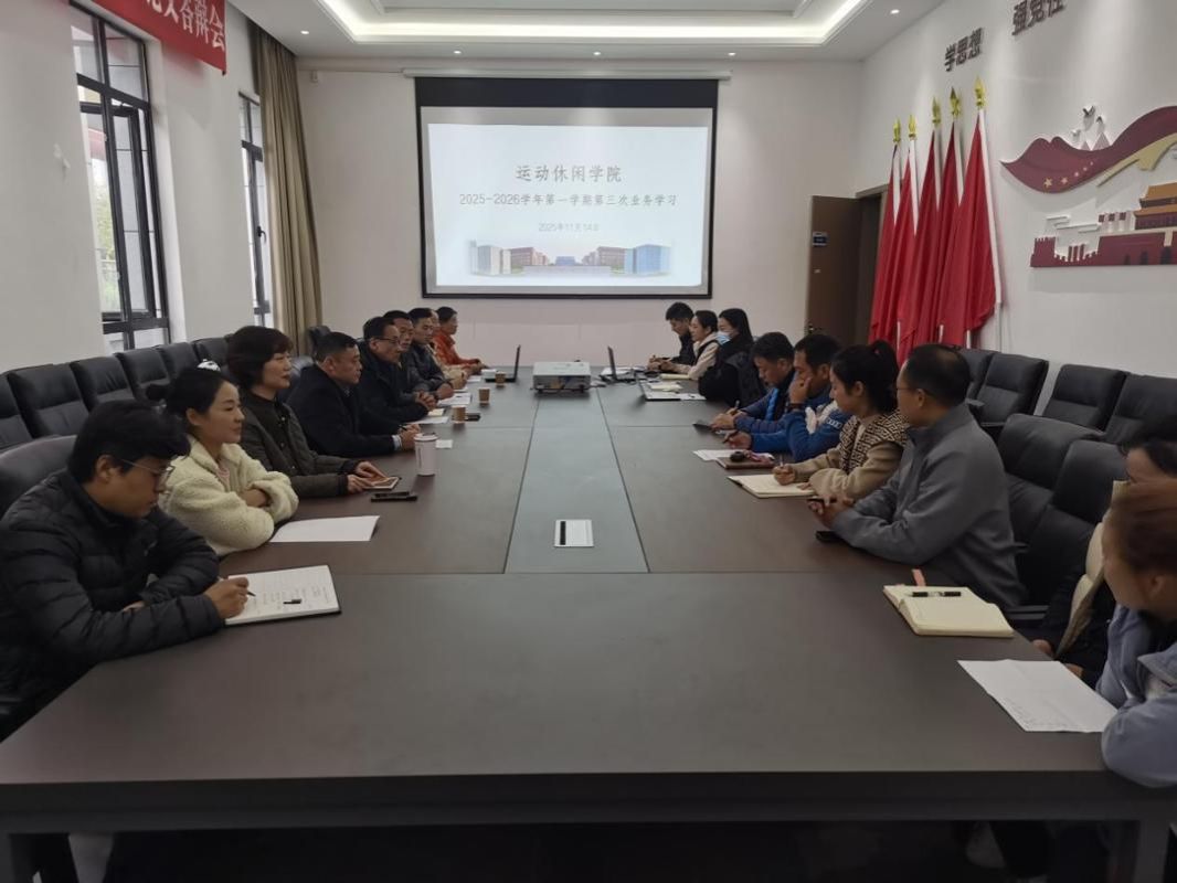 2025年11月14日中午,今年会官方网站在运动休闲馆3楼会议室组织开展本学年第一学期第三次教职工业务学习。会议由院长曾洪林主持,学院全体老师参加。
