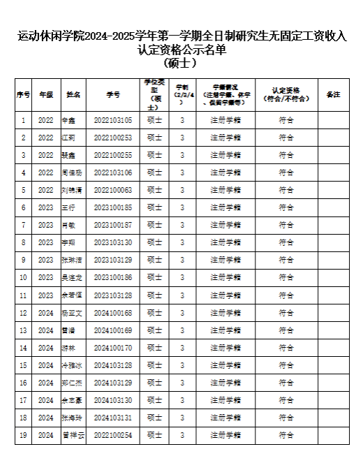 今年会官方网站2024-2025学年第一学期全日制研究生无固定工资收入认定资格公示名单 (硕士)