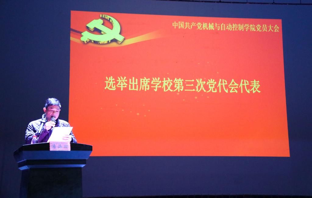 12月12日下午,机控学院在校大剧院召开党员大会,选举出席学校第三次党代会代表。学院党委书记潘海鹏,院长兼副书记陈本永、副书记苏丽辉,副院长、党委委员俞高红、胡明、鲁玉军,党委委员吴震宇以及各师生党员参加会议。会议由潘海鹏主持。