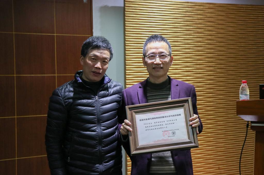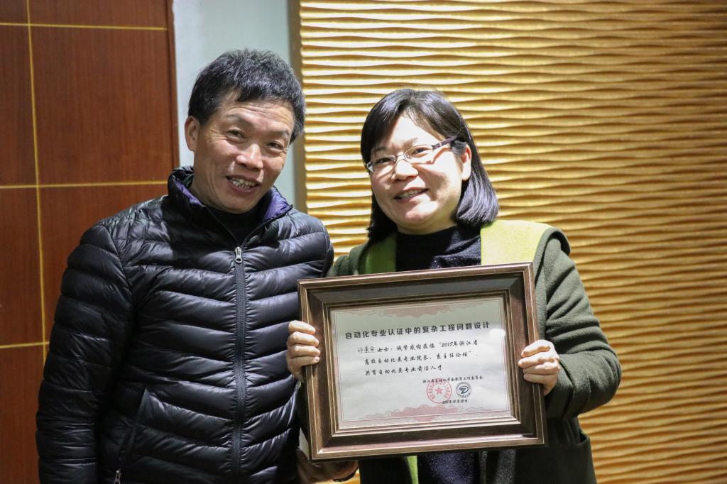 会上,浙江大学本科生院张光新教授作“新工科背景下的自动化专业建设的思考和实践”的报告,杭州电子科技大学吕强教授带来“新工科背景下的人工智能人才培养”的经验与大家共享,绍兴文理学院沈红卫教授的大会报告围绕金课议题,具体“谈谈对金课与课程思政的粗浅认识与初步探索”,中国计量大学许素安教授作“自动化专业认证中的复杂工程问题设计”的报告,最后由金华职业技术学院的陈海荣教授作“高职技术技能型创新拔尖人才培养的思考与实践”的报告,引发了职业技术学院的自动化类专业院长与系主任的强烈共鸣。陈国定主任为各位大会报告专家颁发了证书。