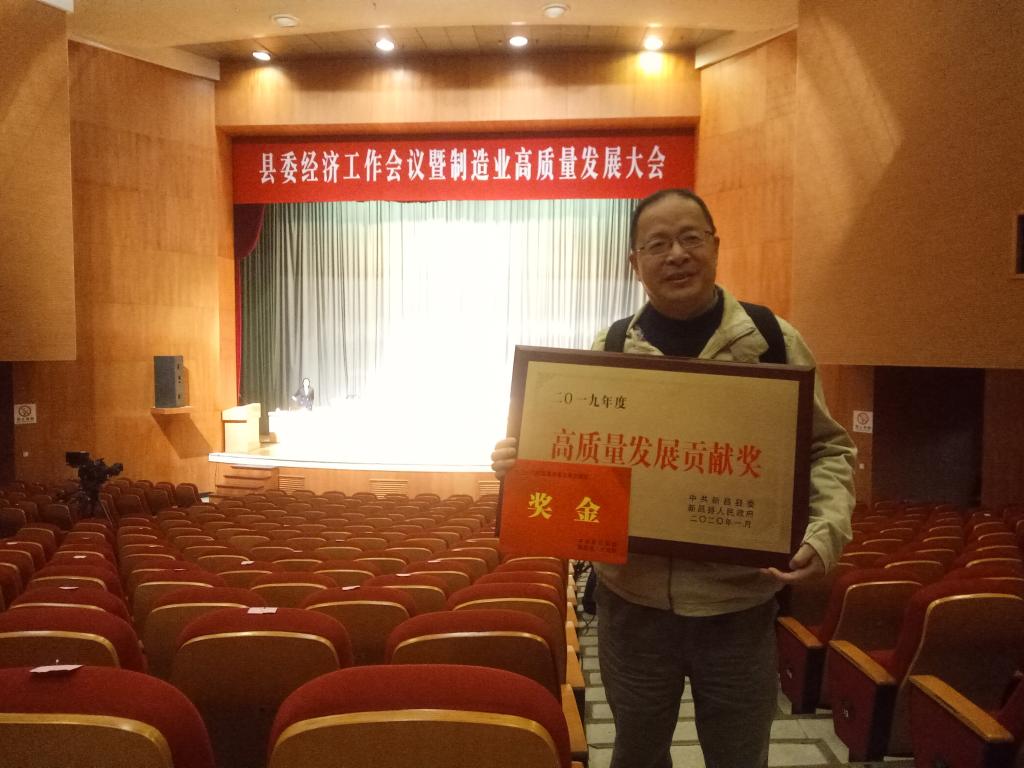 3月27日,新昌县委召开经济工作会议暨制造业高质量发展大会,通报表彰了一批促进当地经济社会高质量发展的优秀集体,其中新昌亚博网站出款秒到账技术创新研究院有限公司荣获2019年度高质量发展贡献奖,负责人胡旭东上台领奖。