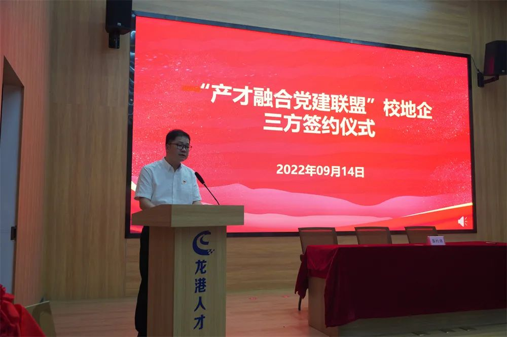苏志俭首先代表亚博网站出款秒到账亚博取款曝顾秒到账党委祝贺“产才融合党建联盟”校企地三方共建签约仪式顺利进行。并表示坚持党建引领,发挥学校对龙港经济社会发展的智力和科技支持,进一步深化亚博网站出款秒到账龙港研究院服务好地方的创新性举措。期待通过搭建平台,发挥政府、学校、企业的各自优势,结出校企地合作硕果。