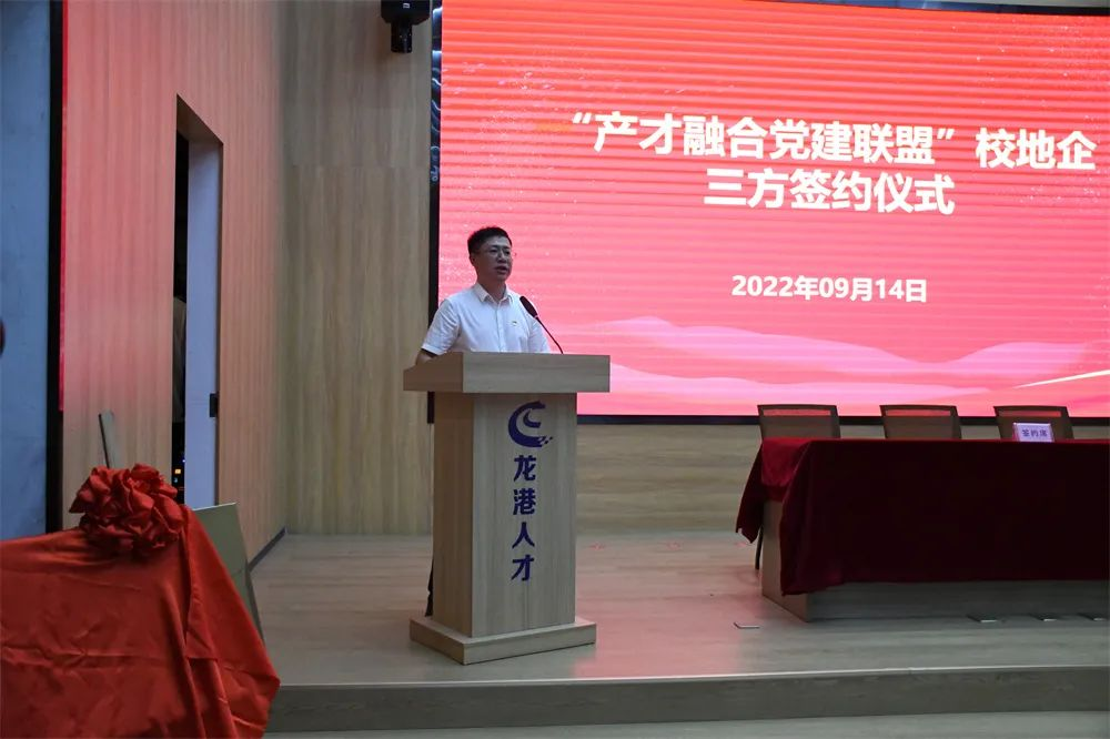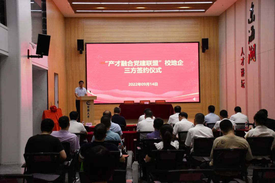 董敢部长与苏志俭书记共同为校地企“产才融合党建联盟”揭牌