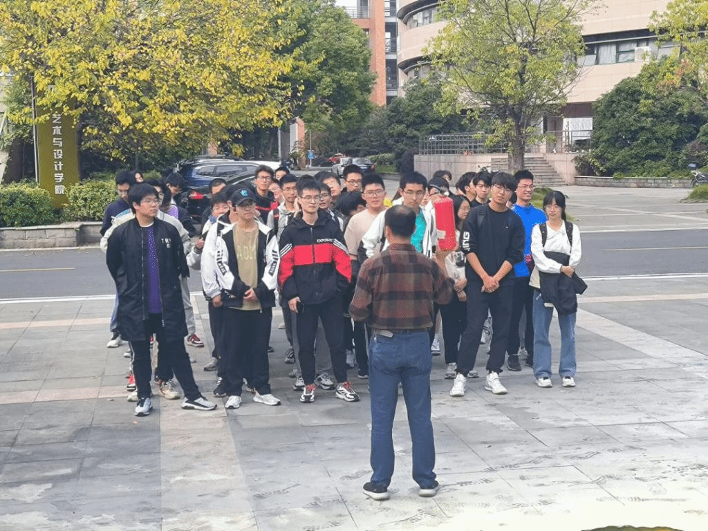 最后,举行了真火消防演练,通过实际的演练来强化大家对于消防知识的印象。大家在李老师的指导下依次进行了灭火的操作,在灭火的过程中同学们有序组队,以三人为一组合力灭火,在此过程中,熟练地掌握了使用灭火器的使用技巧。