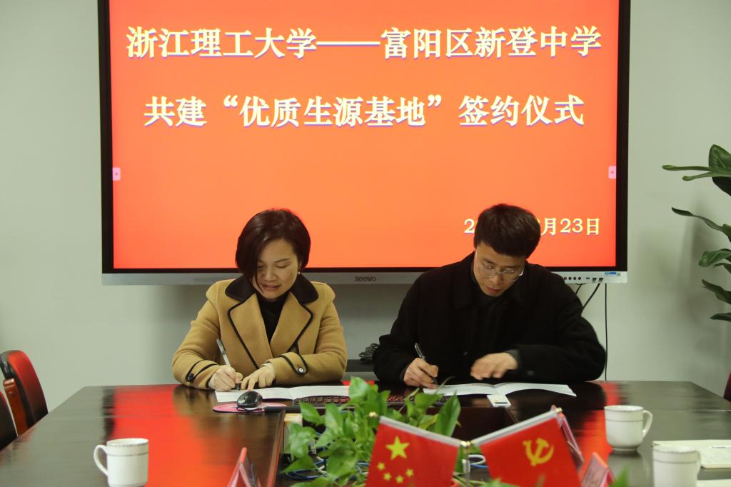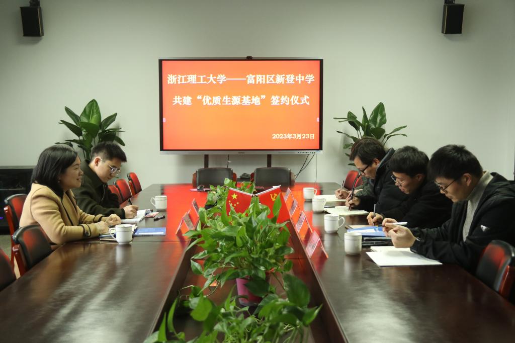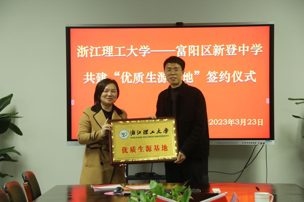 为进一步畅通人才输送和信息渠道,加强大学和中学的合作,吸引更多优秀学子报考亚博网站出款秒到账,3月23日下午,学院党委副书记陆秋萍一行赴富阳区与新登中学建立“优质生源基地”并开展招生宣传活动。“优质生源基地”签约授牌仪式在新登中学会议室举行,新登中学副校长俞锎锋、教务处主任崔金生、电教中心主任施轶林、教务处副主任黄丹丹出席仪式。仪式由俞锎锋主持。