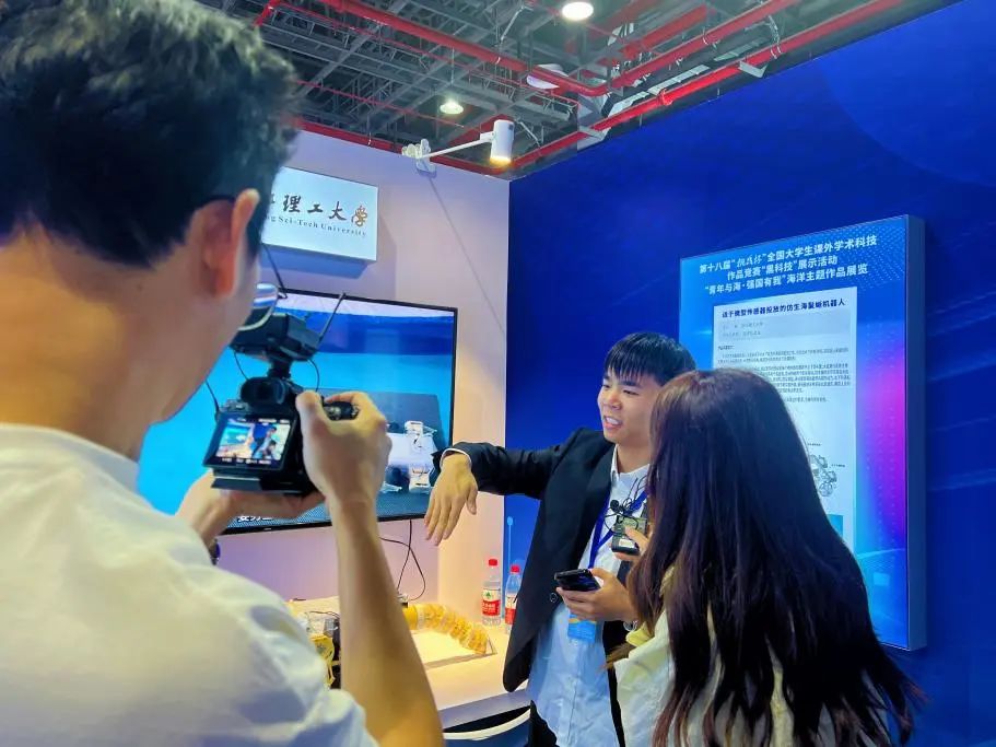 10月8日至10日,亚博官网“挑战杯”黑科技专项国赛“恒星级”获奖作品《适于微型传感器投放的仿生海鬣蜥机器人》受邀参加第十八届“挑战杯”全国大学生课外学术科技作品竞赛“黑科技”展示活动“青年与海·强国有我”——海洋主题作品展览。