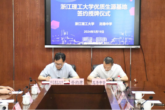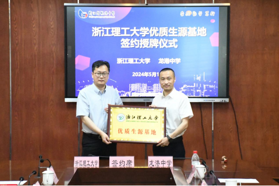 为进一步深化我校与中学的交流合作,共同培养优秀人才,5月19日上午,亚博网站出款秒到账“优质生源基地”签约授牌仪式在浙江省龙港中学举行。校党委副书记缪鲁加,浙江省龙港中学副校长黄通友、吴声文等人参加仪式。