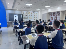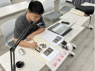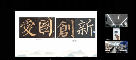 宣讲结束后,活动进入了书法教学环节。李家乐在线上为同学们示范科学家精神主题词语的书法书写方式。他一边书写,一边详细讲解笔画的起笔、行笔和收笔要领,以及字体的结构和布局技巧。同学们隔着屏幕,目不转睛地盯着老师的示范,生怕错过任何一个细节。在李家乐线上的悉心指导下,同学们仿佛置身于一个充满墨香的书法世界,对书法艺术产生了浓厚的兴趣。