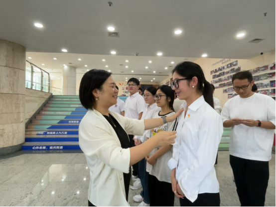 党课结束后,陆秋萍为新发展党员佩戴党员徽章,带领党员们在入党誓词墙前许下了庄严的誓言“我志愿加入中国共产党,拥护党的纲领,遵守党的章程……”,参加仪式的党员同志们面向鲜红的党旗,党徽在身、使命在心,激励着他们在未来的道路上,无论遇到多少艰难险阻,都要以坚定的信念和无畏的勇气,践行入党誓词。