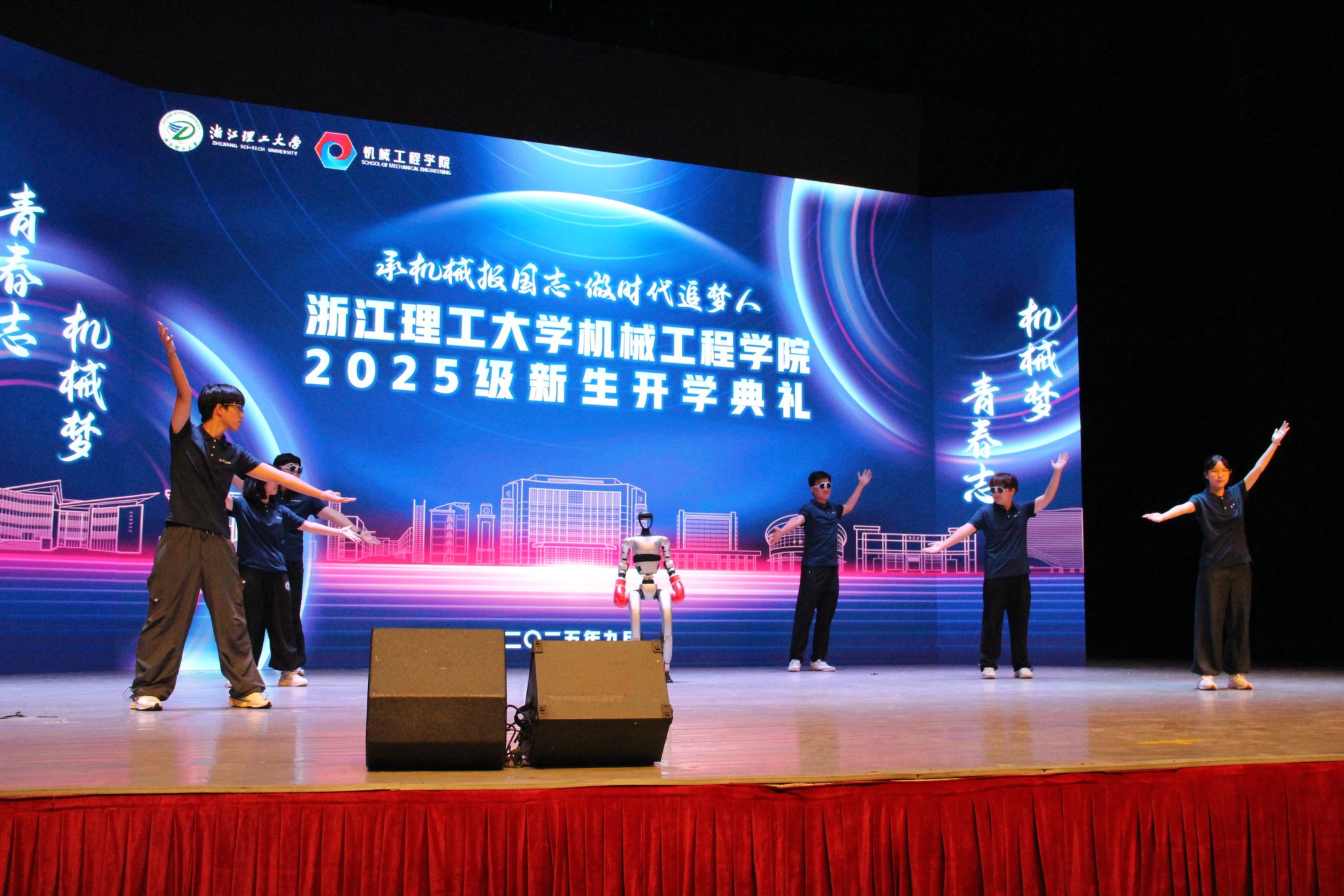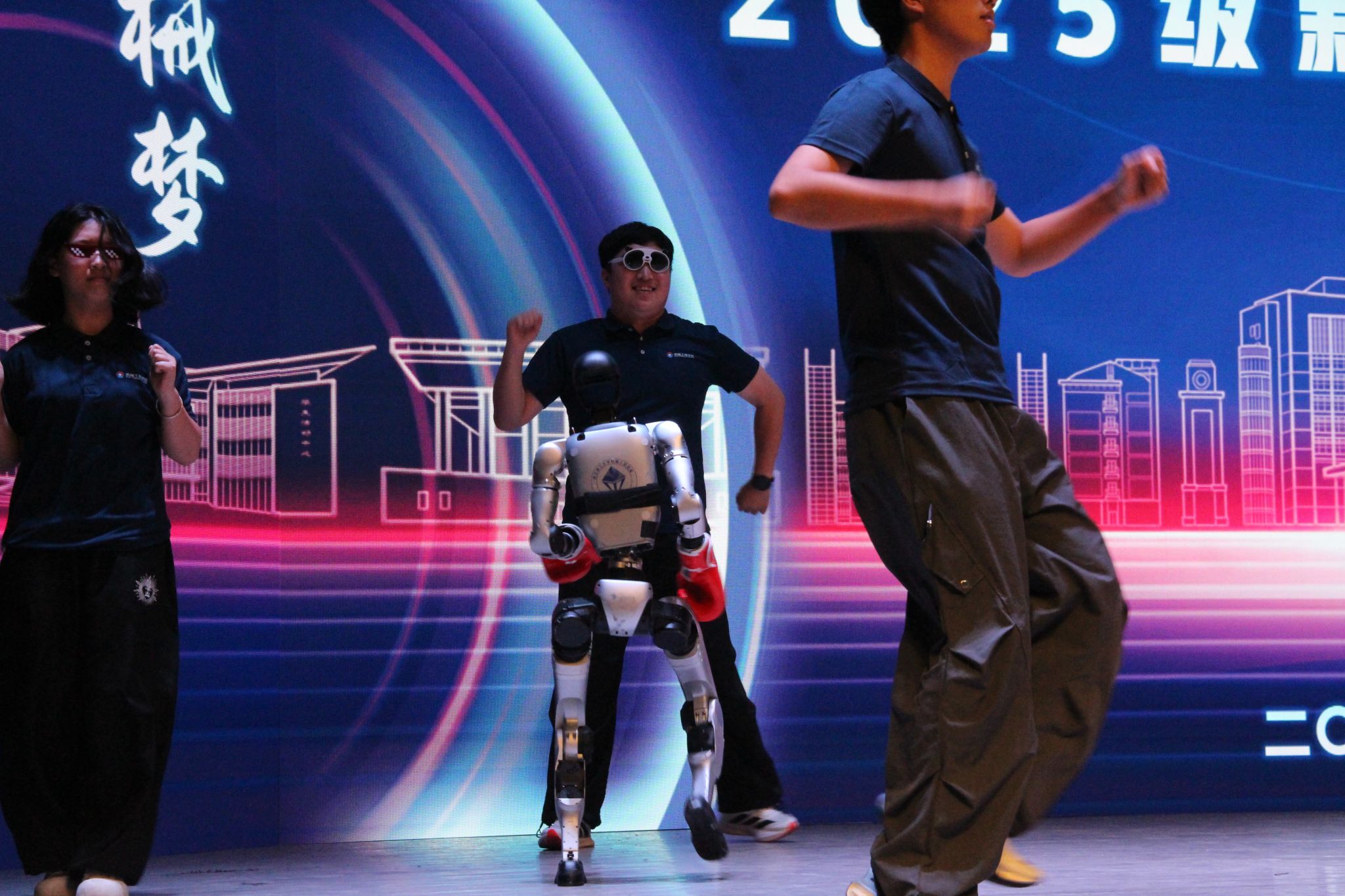 激昂的嘱托犹在耳畔,青春的旋律再次响起。典礼接近尾声时,一场充满活力的舞蹈《你要跳舞吗?》精彩上演——学生们与身形灵活的人形机器人携手共舞,动感的节奏、默契的配合,将“科技与青春”的主题展现得淋漓尽致,也让现场氛围推向高潮。