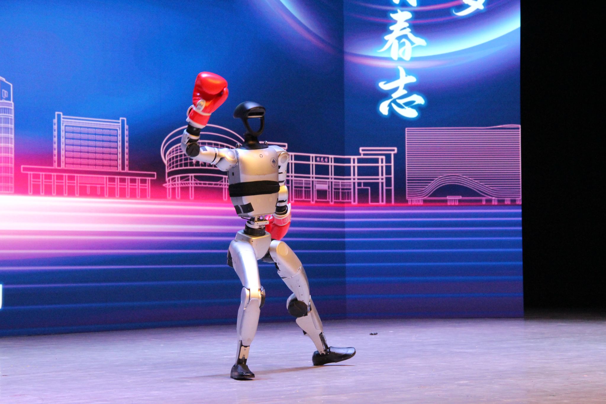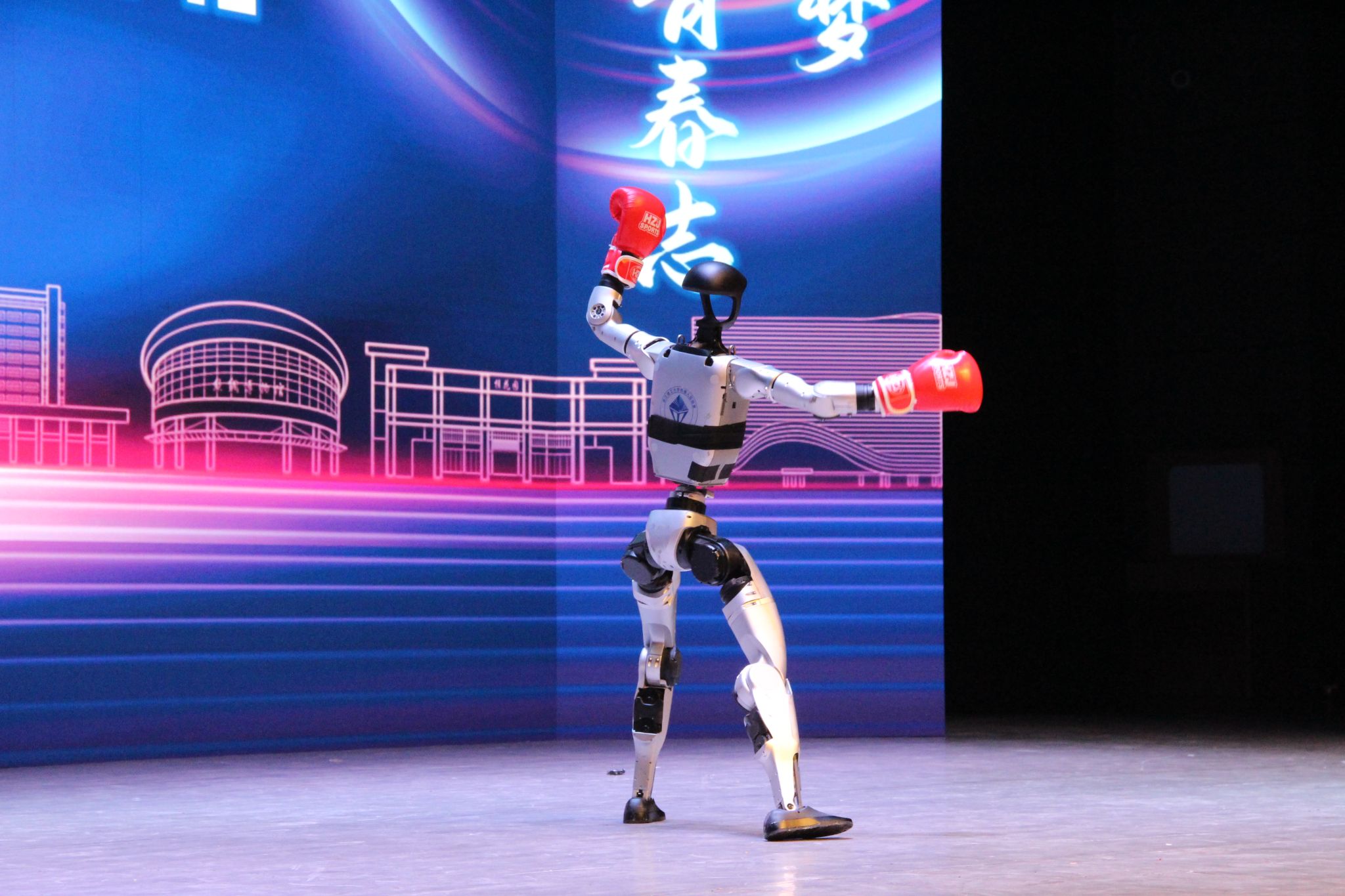 一场别开生面的人形机器人表演《长拳》惊艳全场——机械臂精准复刻长拳的刚劲招式,科技感与传统武术文化碰撞出独特火花,既彰显了机械工程学科的专业特色,也展现了学院“科技赋能青春”的育人理念。