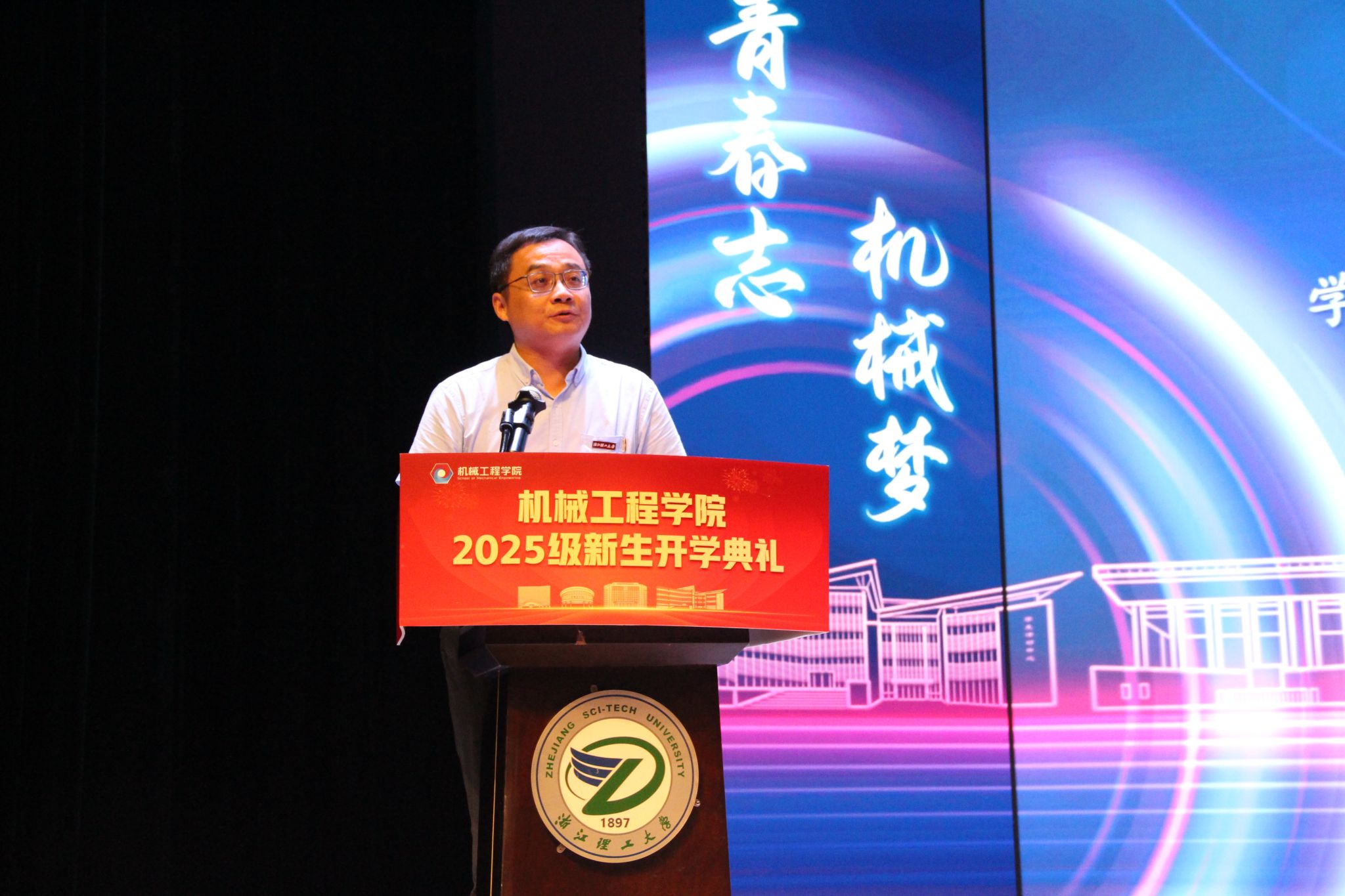 学院院长、全国先进工作者、国家级领军人才李秦川发表讲话,为新生们送上“六句箴言”:一是“砺初心”,牢记机械人的报国使命;二是“多读书”,在广泛涉猎中以交叉融合的知识丰盈内心;三是“多实践”,在动手操作中提升能力;四是“多运动”,以健康体魄支撑逐梦之路;五是“用AI”,紧跟科技前沿拥抱创新;六是“少摸鱼”,以自律态度珍惜大学时光。李院长的话语既饱含对新生的殷切期望,也为他们的大学规划提供了清晰指引。