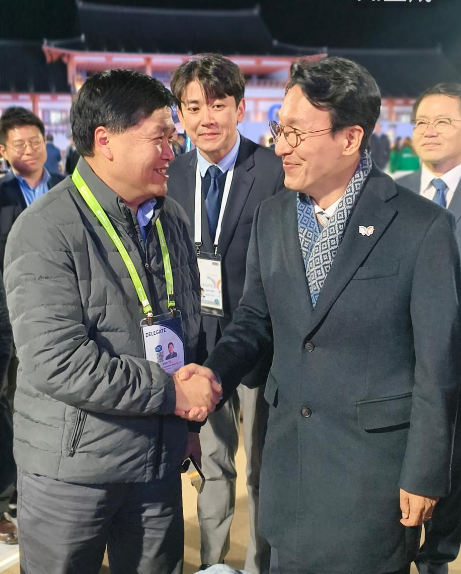 10月29日至31日,亚太经合组织(APEC)工商领导人峰会在韩国庆州举行,主题为“桥梁、商业、超越”,峰会汇聚了来自21个经济体的1700余名政商领袖参会,围绕区域经济一体化、人工智能、数字经济、可持续性等议题展开深度对话。亚博官网77级丝绸机械专业校友、杭州经纬天地创意产业园董事长、杭州校友会会长叶文,09级机电专业校友、宇树科技股份有限公司创始人王兴兴受邀出席,与全球工商界代表共商亚太合作新机遇。